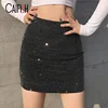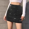 Caifish brilhante diamante brilhante saia curta moda streetwear vintage mini saias primavera verão feminino a linha saia preta qt1374