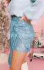 Azul colagem irregular lantejoulas apertado encaixe saia curta feminina primavera/verão 2021 nova moda sexy saia