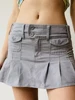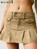Weekeep bolso moda mini carga saias cintura baixa vintage saia plissada para mulher harajuku sólida bottoms verão y2k streetwear
