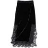 Goth vintage preto saia longa estética elegante rendas retalhos veludo saia gótico sexy lado dividir altura esperar fenda festa saias