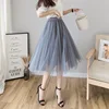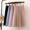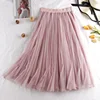Saias das mulheres midi saia plissada preto rosa tule saia 2020 primavera verão coreano elástico de cintura alta malha tutu saia