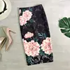 Lápis femininos para verão e primavera, padrão floral, cintura alta, bodycon, pássaros, rosa, justo, pendurado no joelho