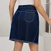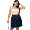 Cor pura mulheres denim curto uma linha saias lavadas costura plus size roupas magro rebarbas na altura do joelho saia temperamento comute