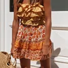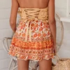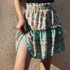 Casual verão estilo feminino praia boho estampa floral mini saia boêmio floral impressão saia feminina babados casual boho saia