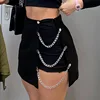 Saia casual feminina verão sexy corrente irregular cor sólida cintura alta envoltório hip mini saias 2022 novo botão decoração saias