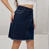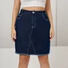 Cor sólida curta uma linha denim saias mulher mais tamanho lavado costura roupas magro rebarbas na altura do joelho saia temperamento casual