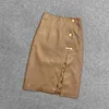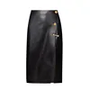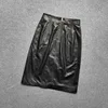 Primavera outono de alta qualidade pele de carneiro couro real das mulheres lápis saia chique saias de couro alto rise c563