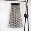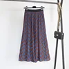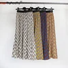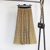 2022 verão outono saia feminina plissado onda corte impressão midi saias elástico de cintura alta uma linha chiffon casual 4 cores com forro