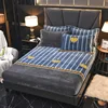 Leite veludo folha de cama de uma peça grossa coral veludo colchão capa de cama à prova de poeira e antiderrapante folha de cama fixa