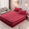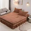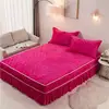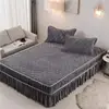 Cristal velo cama saia uma peça acolchoado grosso inverno velo capa de cama flanela colcha de três peças folha de cama