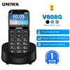 Uniwa v808g v1000 teclado russo inglês sênior recurso telefone 3g 4g forte tocha sênior botão celular grande sos