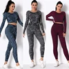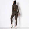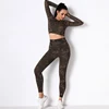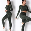 Conjunto de calça legging camuflada para yoga, roupas fitness para academia e treino, sem costura, manga longa, crop top, 2 peças