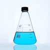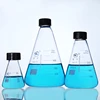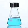 Frasco de vidro cônico com tampa de parafuso, equipamento de laboratório em borosilicato de vidro