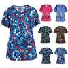 3d impressão feminina enfermagem scrubs topos t camisa casual manga curta mulheres esfrega uniformes enfermeira v neck bolso roupas femininas